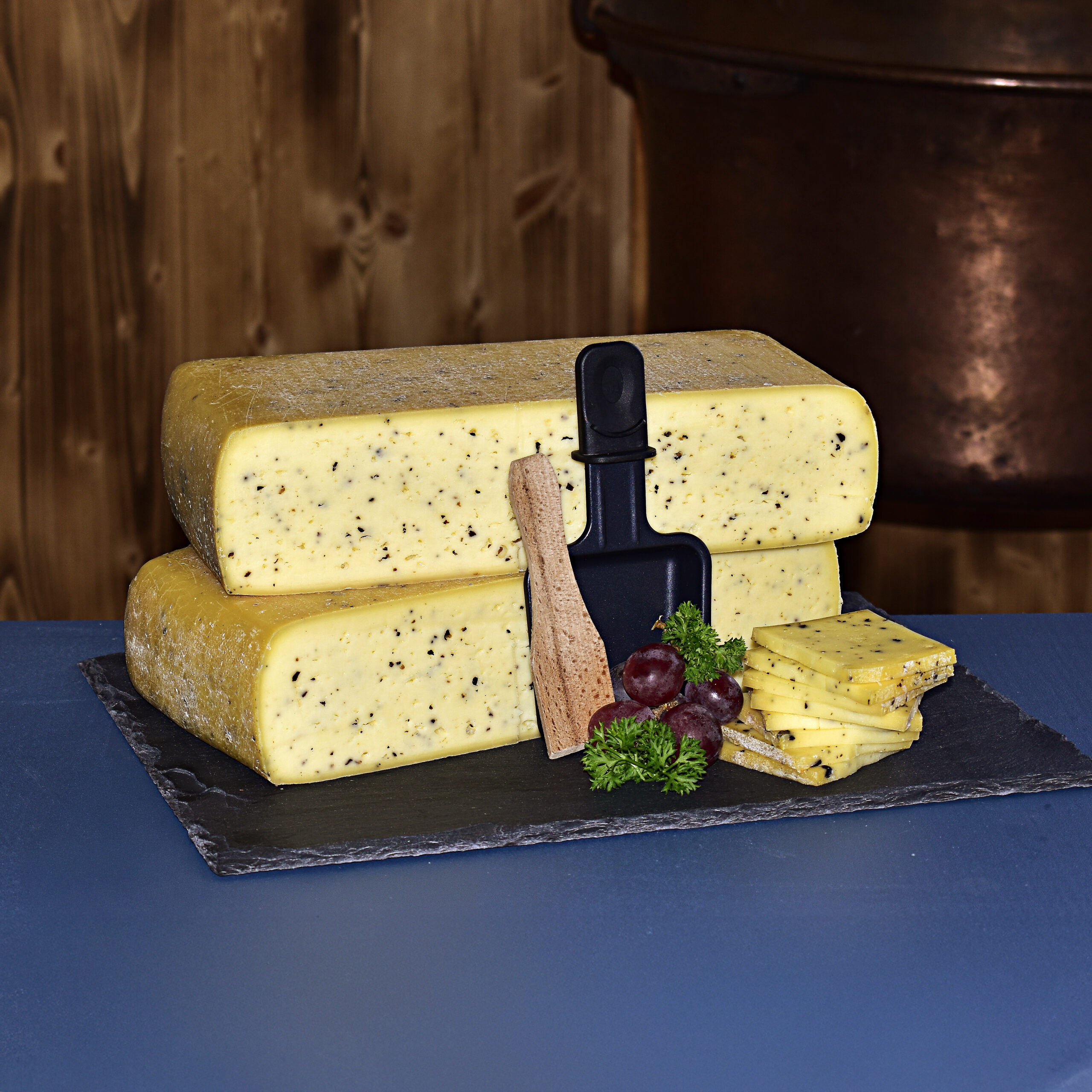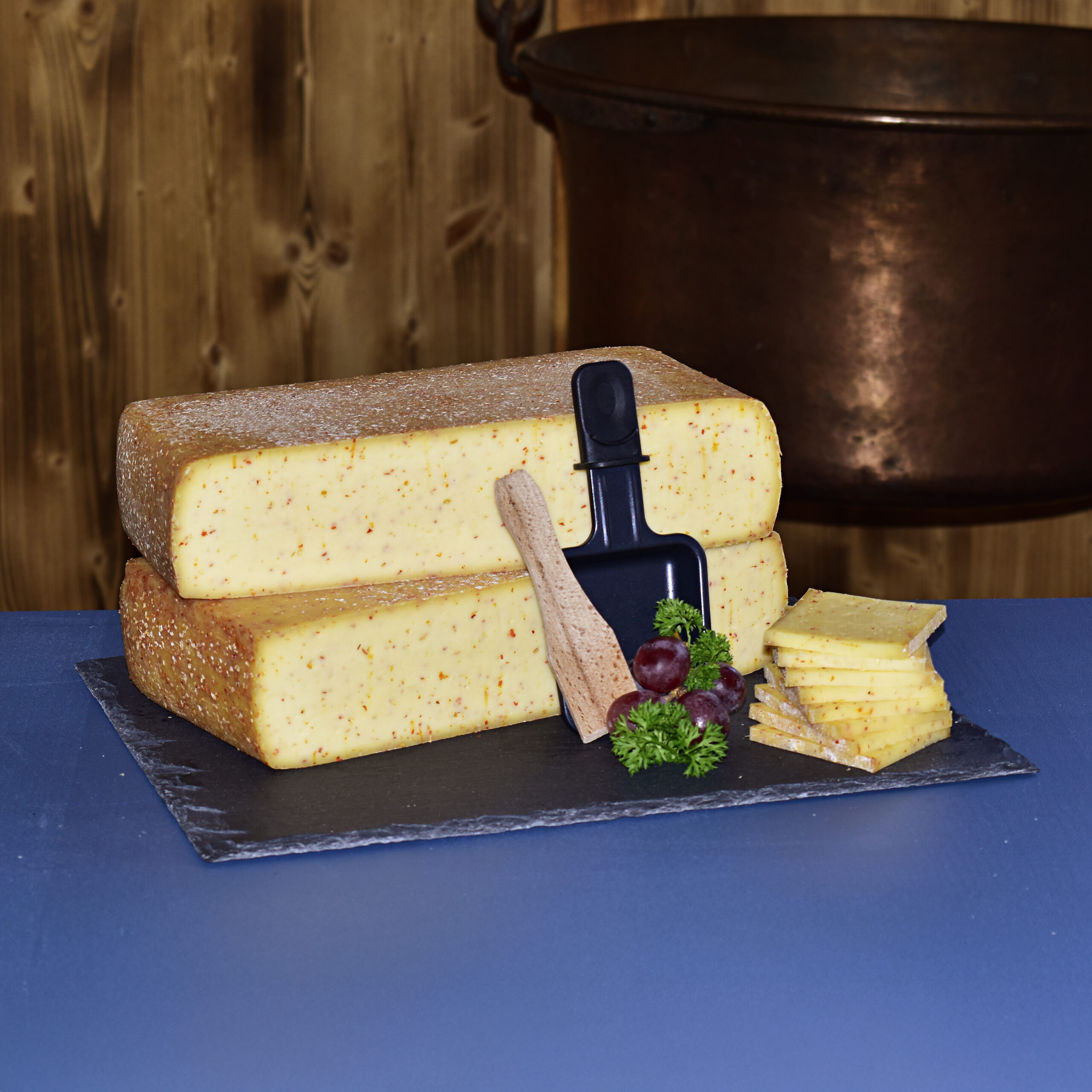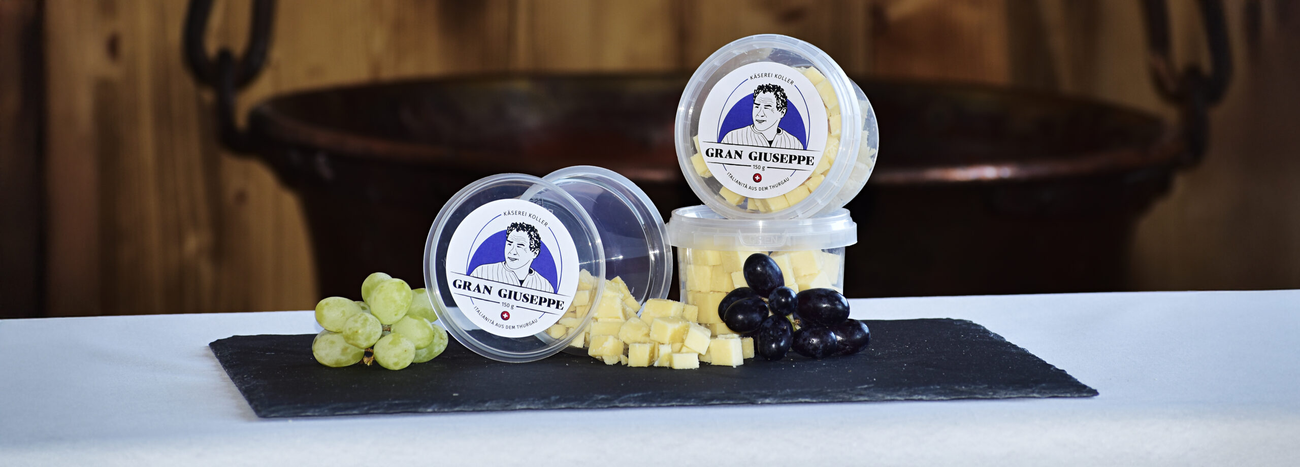 Unsere Produkte GRAN GIUSEPPE Ein fruchtig-süsser Hartkäse, italienische Tradition neu interpretiert im Thurgau. Ideal als Apéro, sowie zum Würzen in der warmen und kalten Küche. Alter: 6-12 Mt. MORGENROT Eine Freude wie der Sonnenaufgang über dem Säntis Der fruchtig-würzige Halbhartkäse, der im Munde zergeht. Ideal als Frühstücks- oder Dessertkäse. Geeignet für einen geschmackvollen Wurst-Käsesalat. Alter: 4-5 Mt. LÖWENKÄSE Aus dem Thurgau – Lebensfreude ist ein Geschmack Rahm-Schnittkäse, würzig und gleichzeitig zartschmelzend in der Tradition der Ostschweizer Schnittkäse. Ideal als Dessertkäse, für die warme und kalte Küche. Alter: 5-6 Mt. SWISS LADY Der milde Genuss für die ganze Familie Ob zum Zmorge, Znüni, Zvieri oder Znacht – Der mild aromatische Halbhartkäse ist der ideale Begleiter für jede Mahlzeit. Ideal als Dessertkäse, für die warme und kalte Küche. Alter: 4-8 Wochen RAUCHKÄSE Aus dem Thurgau – Lebensfreude ist ein Geschmack Naturgeräuchter Halbhartkäse mit würzigem Aroma Ideal als Dessertkäse Alter: 4-8 Wochen RACLETTE: NATURE Die zartschmelzende Scheibe, die man nie mehr vergisst Raclette ist nicht nur ein Käse – es verbindet die Menschen und weckt Emotionen! Ideal als vollwertige Mahlzeit oder zum Überbacken Alter: > 10 Wochen RACLETTE: PFEFFER Die Scheibe mit Pfiff Raclette ist nicht nur ein Käse – es verbindet die Menschen und weckt Emotionen! Ideal als würzige Ergänzung Alter: > 10 Wochen RACLETTE: TRÜFFEL Die Scheibe für Feinschmecker Raclette ist nicht nur ein Käse – es verbindet die Menschen und weckt Emotionen! Ideal als exquisite Besonderheit Alter: > 10 Wochen RACLETTE: CHILI Die rassige Scheibe Raclette ist nicht nur ein Käse – es verbindet die Menschen und weckt Emotionen! Ideal als feurige Bereicherung Alter: > 10 Wochen MILDER TILSITER Ein Klassiker für jeden Kühlschrank Frisch und geschmeidig in jeder Situation Ideal zum Z’nacht oder zwischendurch Alter: 4-8 Wochen RAHMTILSITER Vollmundig und wohlschmeckend – das Original aus dem Thurgau Frisch und geschmeidig in jeder Situation Ideal zum Z’nacht oder zwischendurch Alter: 4-8 Wochen GRILLGOLD Die heisse Krönung, eine köstliche Mahlzeit das ganze Jahr hindurch Ob aus der Pfanne oder vom Grill, der geschmackvolle Genuss ist garantiert Ideal als aussergewöhnliches Apérovergnügen.
